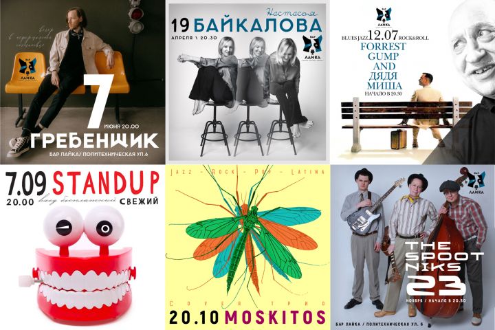 Креативы для социальных сетей бара Лайка с рекламой концертов.