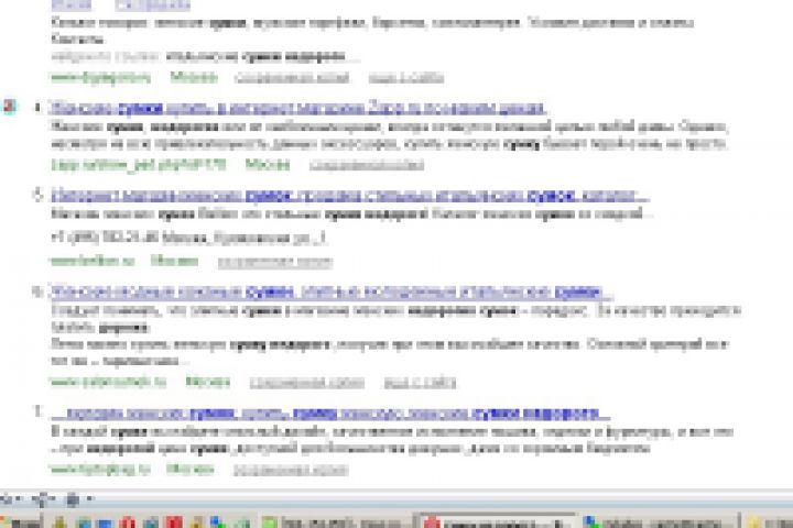 7 место поисковой системы Яндекс - запрос - сумки недорого