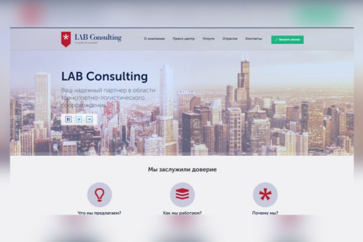 LAB Consulting - Ваш надежный партнер в области транспортно-логистического сопровождения Адаптивная верстка сайта для компании занимающейся транспортными услугами. Технологии: HTML, CSS, JS, jQuery, PHP, Wordpress, XAMPP