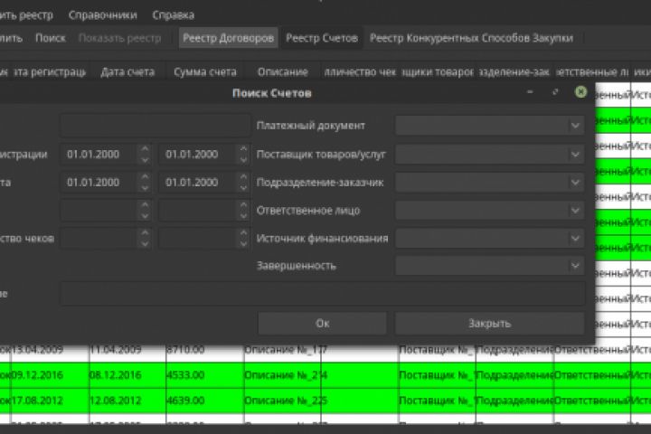 Программа для работы с реестрами договоров, счетов и конкурентных способов закупки по 223 ФЗ.