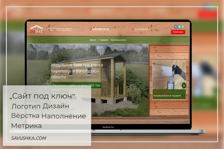 Сайт "Под ключ" ------------------------- Разработка сайта для компании по производству и монтажу модульных бань. Подбор цветов Разработка логотипа Дизайн и разработка сайта Подключение Я.Метрики, Вебмастер