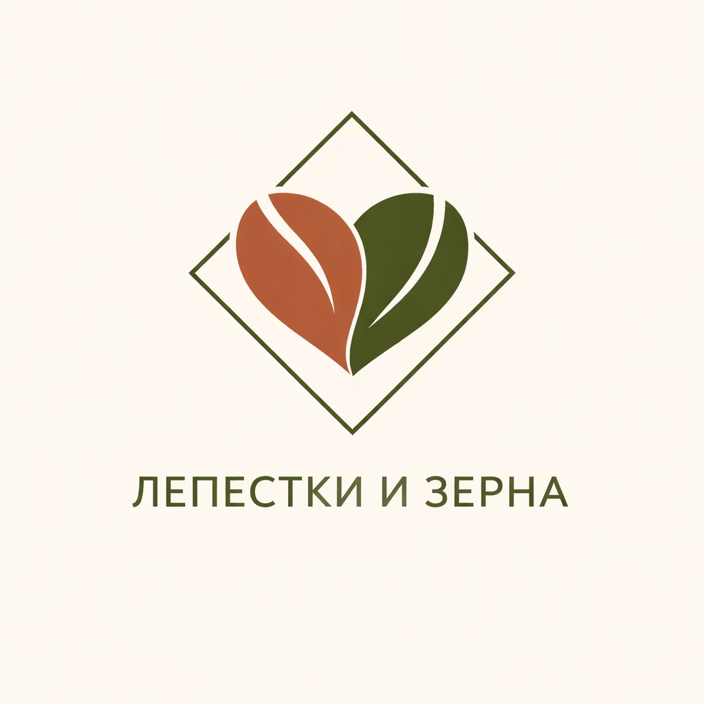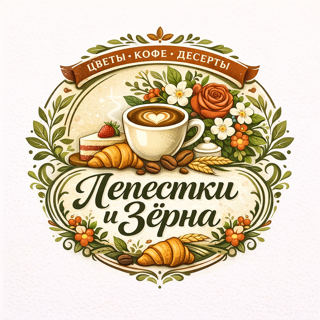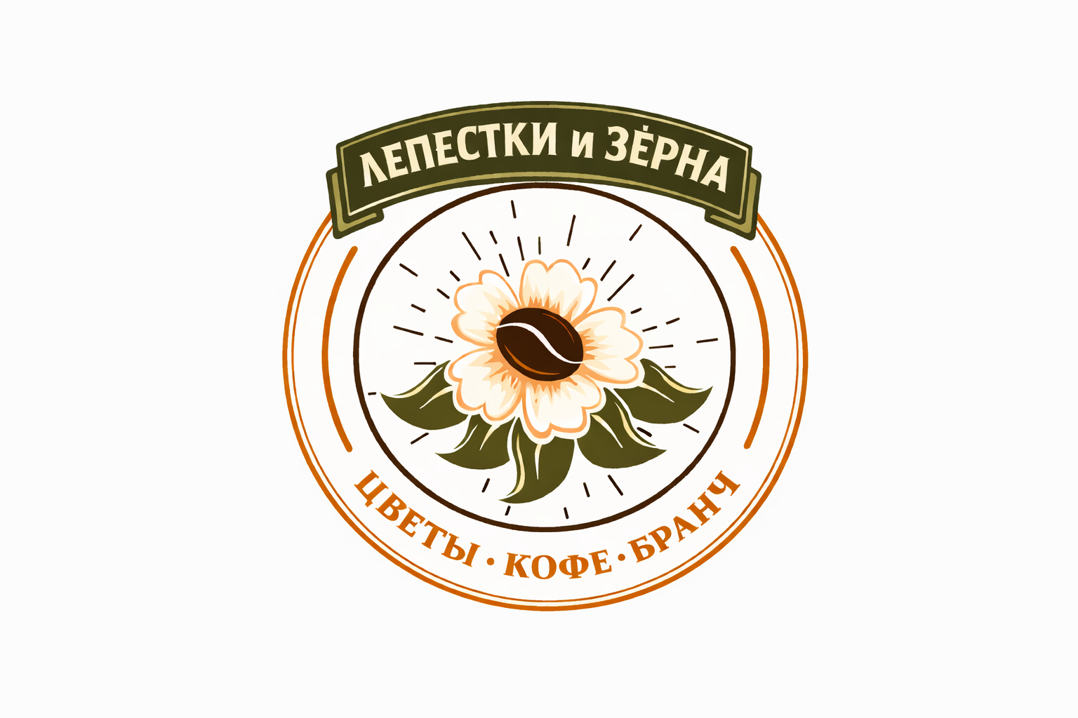 Разработать логотип для цветочного магазина и кофейни с кухней (один совместный проект в одном помещении). Название в логотипе "Лепестки и Зёрна". В кофейне различные десерты, напитки и кухня с завтраками и простое меню (бранчи).