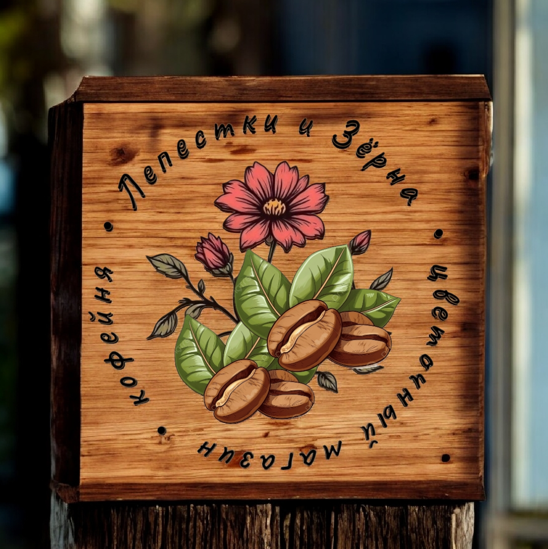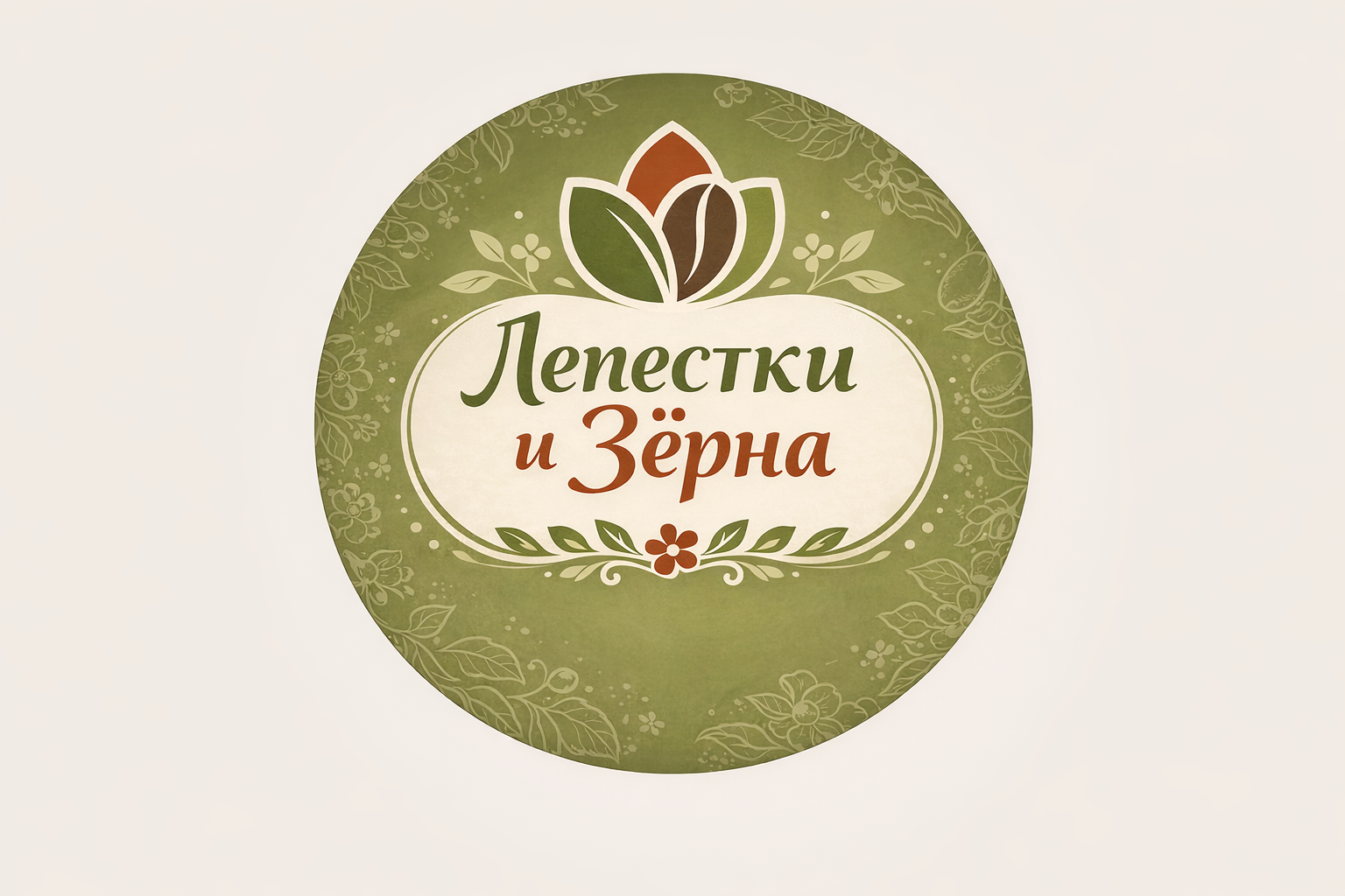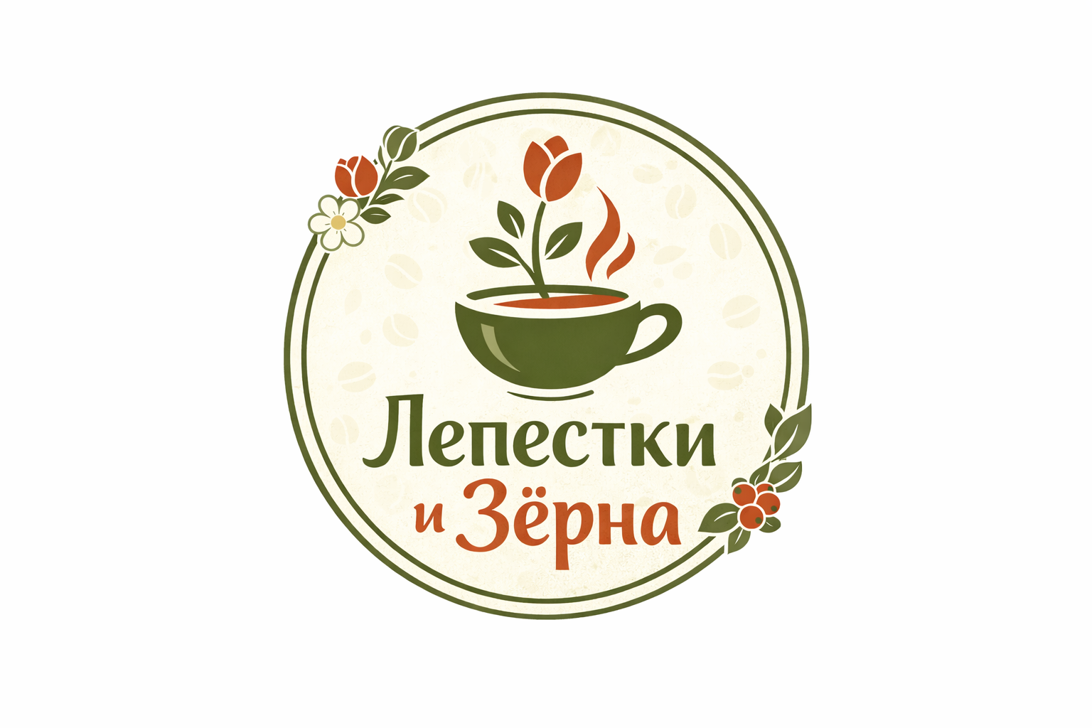 Разработать логотип для цветочного магазина и кофейни с кухней (один совместный проект в одном помещении). Название в логотипе "Лепестки и Зёрна". В кофейне различные десерты, напитки и кухня с завтраками и простое меню (бранчи).