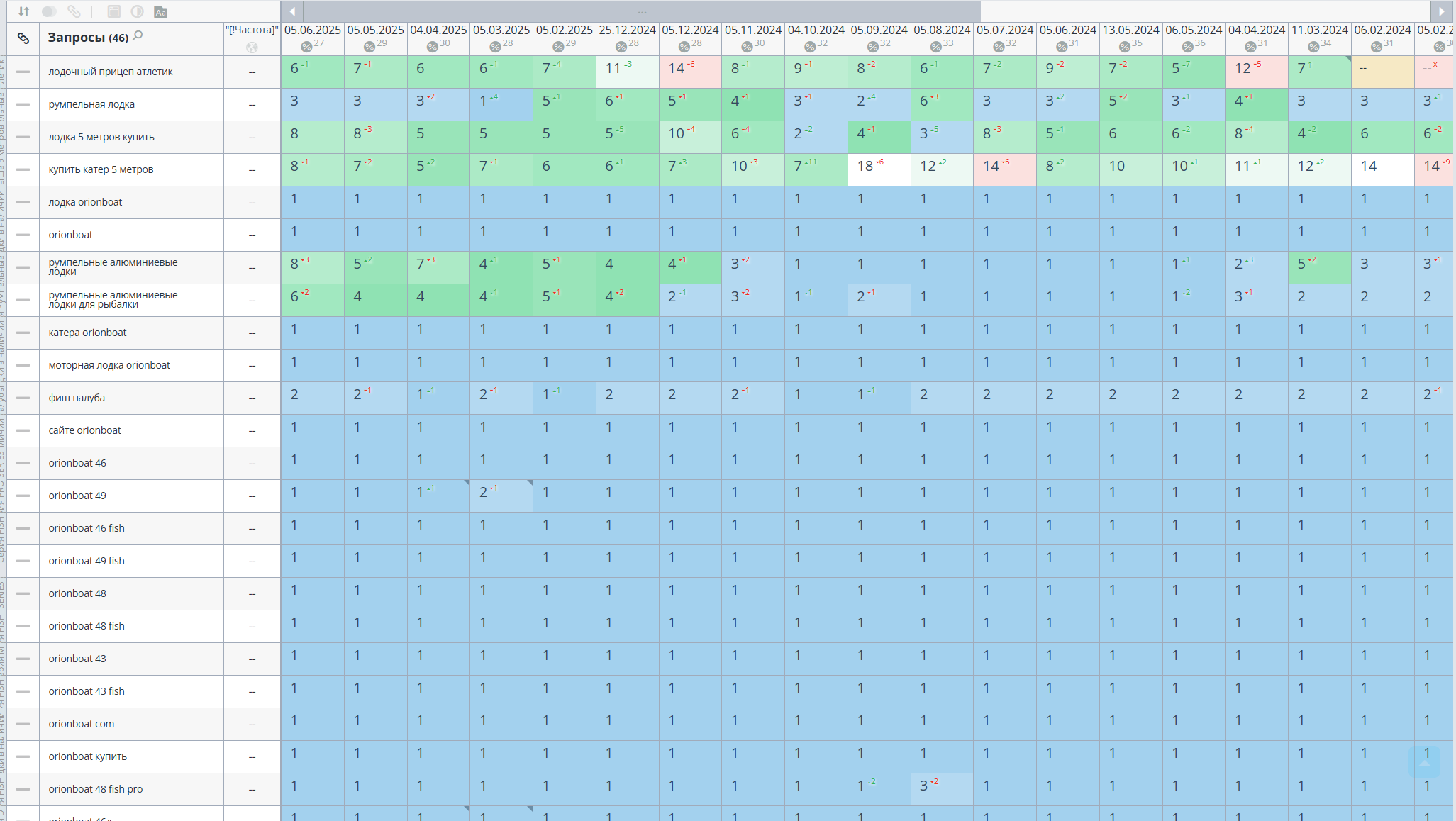 Здравствуйте. Пришлите адрес сайта. посмотрю. Если можно, то этот список запросов файлом. Отчет по позициям