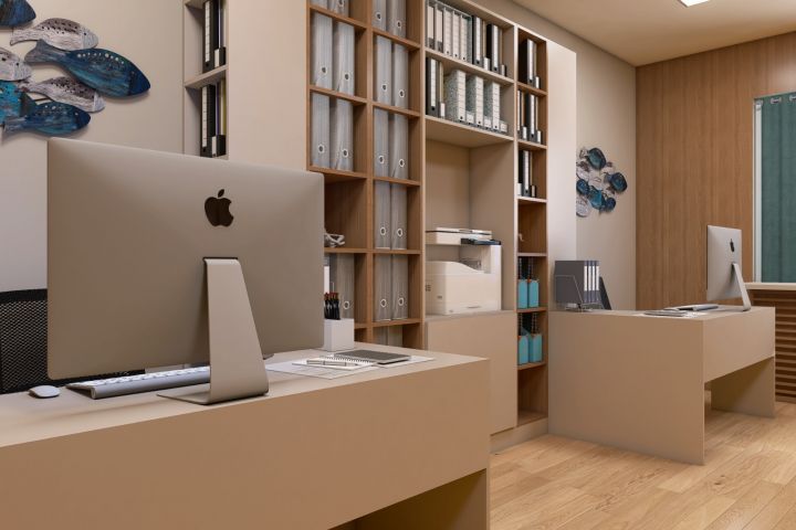 Необходимо выполнить визуализацию офисного помещения по брендбуку.