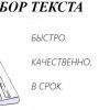 Перепечатка текстов, которая включает в себя, печать текста с отсканированных документов; печать текста с книжных носителей ввод цифровой и текстовой информации с отсканированных Документов, сверка после внесения правок набор информации с предоставленных графических файлов в текстовый документ. Вывод информации с картинок, аудио, видео, и других источников .